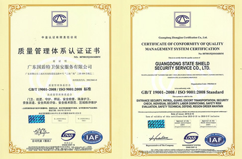 ISO9001管理體系認證,佛山市A級重合同守信用企業廣東保安協會會員